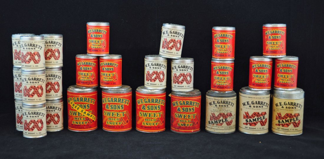 27 W E Garrett Sons Snuff Cans Incl 24 Samples Aug 30 2014 Kennedys Auction Service Llc In Tn